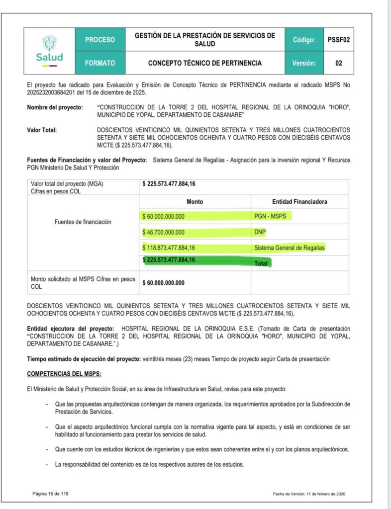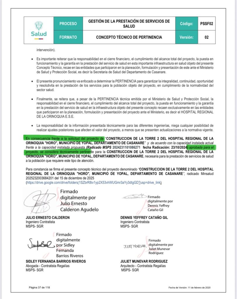 El proyecto de construcción de la Torre 2 del Hospital Regional de la Orinoquía (HORO) dio un paso clave esta semana: el Ministerio de Salud y Protección Social avaló la pertinencia de la obra.