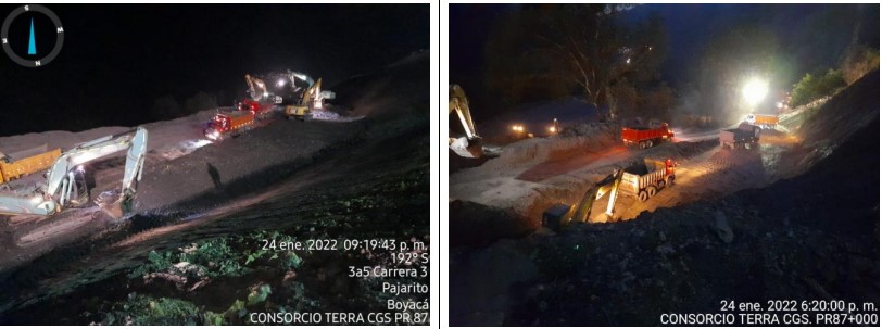 En informe del Invías a 25 de enero se reporta que prosigue cargue y retiro de material de remoción hacia botaderos PR87+200 y PR88+500 (Lado Pajarito) y PR77+500 y PR84+600 (Lado Sogamoso), se realiza conformación de los botaderos en mención.