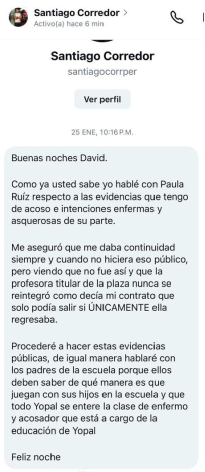 Exsecretario de Educación de Yopal, quien renunció en medio de señalamientos de acoso sexual, pide reintegro a la Alcaldía vía tutela