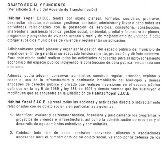 De acuerdo con el documento técnico, la transformación apunta a crear una nueva entidad denominada Hábitat Yopal E.I.C.E.
