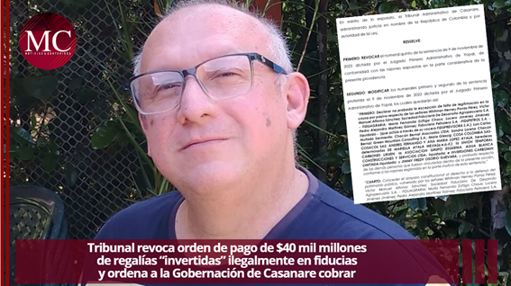 Tribunal revoca orden de pago de $40 mil millones de regalías “invertidas” ilegalmente en fiducias y ordena a la Gobernación de Casanare cobrar