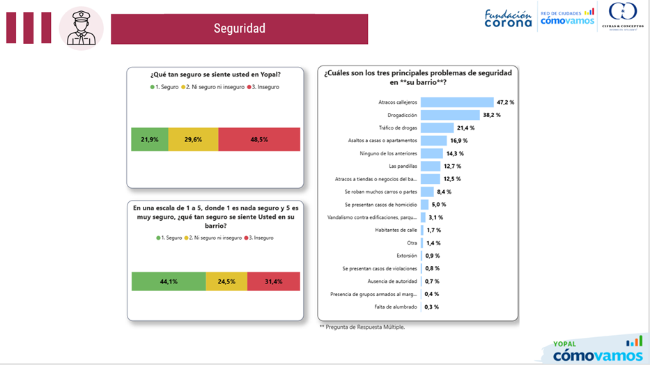 48,5 % percibe inseguridad en la ciudad, 31,4 % siente inseguridad en su barrio, 40 % ve difícil conseguir empleo y 29,9 % encuentra barreras para emprender.